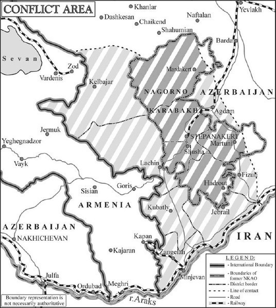 Конфликт по поводу Нагорного Карабаха находился в тлеющем состоянии со времени окончания Первой Мировой войны,(1) но только после распада Советского Союза в 1991 г. конфронтация между армянами и азербайджанцами переросла в полномасштабную войну, жертвами которой стали приблизительно 22 - 25 тыс. чел., которая привела к тому, что в обеих странах более одного миллиона человек стали беженцами и перемещенными лицами.(2) Азербайджан настаивает на том, что этот регион - часть его территории; Армения заявляет, что армянское большинство, проживающее там, имеет право на самоопределение и независимость.