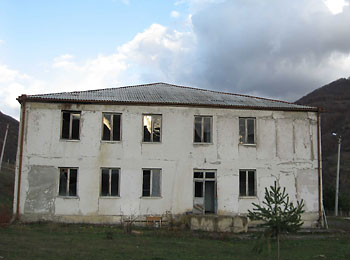 В селении Коринта жители рассказали правозащитнице о том, что неизвестные разграбили школу (см. фото). Раньше восьмилетнюю школу этого населенного пункта посещали дети из трех соседних населенных пунктов, где были только начальные школы. Участники поездки сами посетили коринтскую школу.