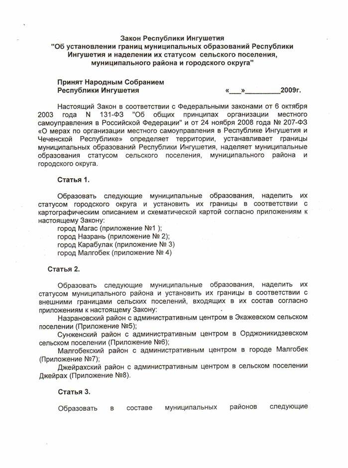 Об установлении границ муниципальных образований Республики Ингушетия и наделении их статусом сельского поселения, муниципального района и городского округа