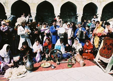 Праздничное веселье связано с играми и театрализованными мероприятиями, устраиваются выступления канатоходцев, состязания "пехлеванов" (силачей), петушиные бои, исполняются произведения фольклора.