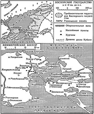 Боспорское государство, Боспор - античное рабовладельческое государство в Северном Причерноморье. Образовалось около 480 г. до н. э. в результате объединения греческих городов на Керченском и Таманском полуостровах. Столицей государства был Пантикапей (современная Керчь), крупные города - Фанагория, Гермонасса (современная Тамань) - на Таманском полуострове, Феодосия, Тиритака, Нимфей и др. - на Керченском, Горгиппия (современная Анапа), позднее Танаис - в устье Дона. В состав Боспорского государства с конца V и в 1-й половине IV веков до н. э. входили также земли, населенные скифскими (Керченский полуостров) и синдо-меотийскими племенами (Нижнее Прикубанье и Восточное Приазовье). Правил в Боспорском государстве сначала греческий род Археанактидов (480-438 гг.), который сменила греко-туземная династия Спартокидов (438-109 гг. до н. э.). IV-III века до н.э. - время экономического и культурного расцвета Боспорского государства. В этот период Боспорское государство было важнейшим экспортером хлеба в города Греции и Малой Азии. Вывозились скот, рыба, кожи, а также рабы. В обмен из Средиземноморья в Боспорское государство ввозились вина, оливковое масло, ткани, металлические изделия, керамика и пр. Значительная часть этого импорта переправлялась боспорскими купцами степным племенам Причерноморья - скифам, сарматам и др. В самом Боспорском государстве высокого развития достигли хлебопашество, скотоводство, добывающие промыслы (особенно рыболовство), ремесла. Экономика Боспорского государства базировалась на эксплуатации рабов и зависимого или полузависимого сельского населения.