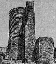 Памятник средневековой азербайджанской архитектуры в Баку (XII век, зодчий Масуд, сын Давуда). Мощный цилиндрический объем (внутри - 8-ярусный; высота 27 м, толщина стен у основания 5 м), с огромным выступом с восточной стороны. Девичья башня сложена из известняка; выступающие и заглубленные горизонтальные ряды камня образуют своеобразную ребристую поверхность фасада.