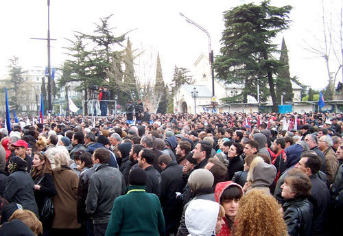 Бывший спикер парламента Нино Бурджанадзе, открывая митинг, сказала: "Сегодня, в день Вербного воскресенья, мы не планировали проведение акции и собирались возобновить ее в понедельник". "Но из-за того, что минувшей ночью группа вооруженных дубинками лиц в гражданской одежде ворвалась на площадь перед парламентом и разбила часть аппаратуры и сцены, мы решили возобновить митинг сегодня", - подчеркнула она.