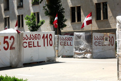 Представители молодежных движений грузинской оппозиции устроили импровизированный судебный процесс над главой государства, вынесли приговор главе государства, приговорив его к заключению "на свалке истории".