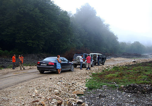 Вчера, 19 августа, на территории Сочинского национального парка состоялась общественная акция против рубок леса, ведущихся при строительстве совмещенной дороги Адлер - Красная Поляна. Местом проведения акции стал участок дороги, расположенный между временными мостами №3 и №4, ниже поселка Монастырь.