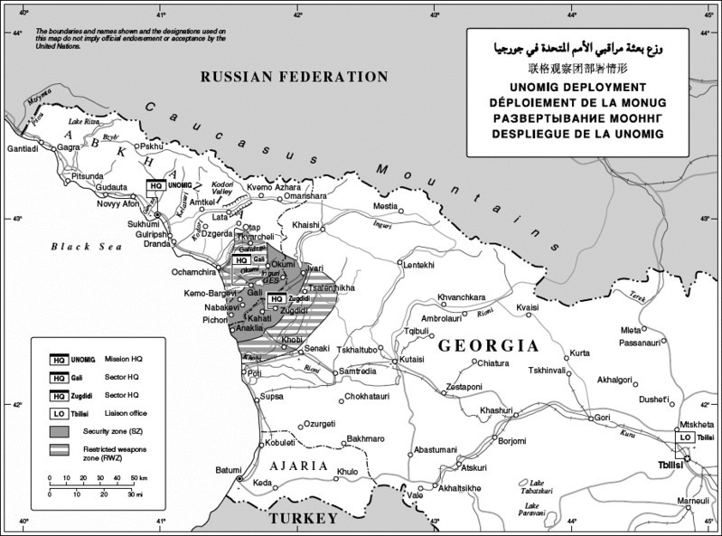 21. 4 марта войска Российской Федерации не пропустили патруль Организации Объединенных Наций через российскую позицию, расположенную около села Лекухона в зоне безопасности. Затем российский офицер связи сообщил Миссии, что патрулям Организации Объединенных Наций не будет разрешено пользоваться теми участками дорог, которые пересекают позиции войск Российской Федерации. Поэтому Миссия использует другие дороги, чтобы добраться до некоторых из своих районов патрулирования.