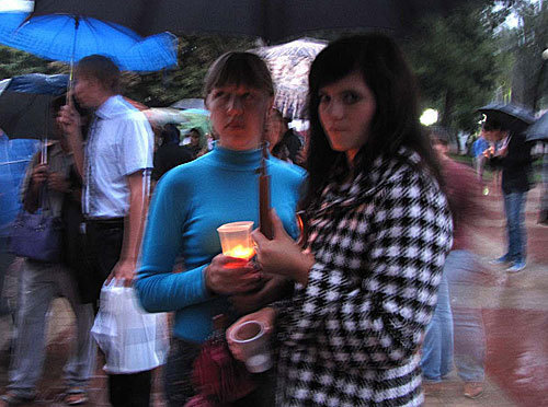 По оценке корреспондента "Кавказского узла", всего на акцию "Свеча памяти" в День солидарности борьбы с терроризмом собрались около 500 человек. Перед началом акции прозвучало напоминание о 16 сентября 1999 года (день взрыва в Волгодонске), октябре 2002 года (захват театра на Дубровке в Москве), 1 сентября 2004 года (захват школы в Беслане).