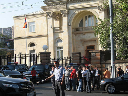 23 сентября напротив президентского дворца в Ереване прошла акция протеста, участники которой заявили о неприемлемости внешней политики Армении в вопросах урегулирования карабахского конфликта, а также парафированных армяно-турецких протоколов.