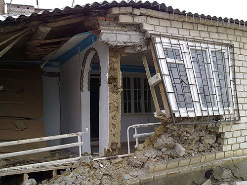 Магомед Мутаэлумов говорит, что в его доме появились трещины, размер которых постоянно растет. "Вначале появились трещины на первом этаже, теперь стены расходятся и на втором этаже, расстояние между ними увеличивается буквально по часам. Комнаты трудно топить. Вчера, когда ударили морозы и пошел снег, положение усугубилось", - рассказал Мутаэлумов. Он также сообщил, что по соседству с ним разрушено три дома, еще около двадцати домов находятся в аварийном состоянии, без крова остались 15 человек, их приютили родственники и соседи.
