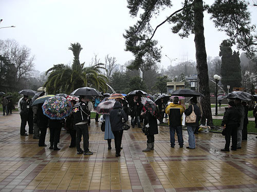 В Сочи прошла акция в защиту прав избирателей. Участники акции - кандидаты в депутаты Городского собрания, предприниматели, члены общественных организаций - выступали за свободные выборы, против произвола местных чиновников и давления представителей исполнительной власти на непровластных кандидатов в депутаты.
