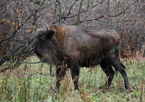 Сотрудники Министерства окружающей среды и природных ресурсов и работники заповедника регулярно устраивают кормушки на новом месте обитания зубров.