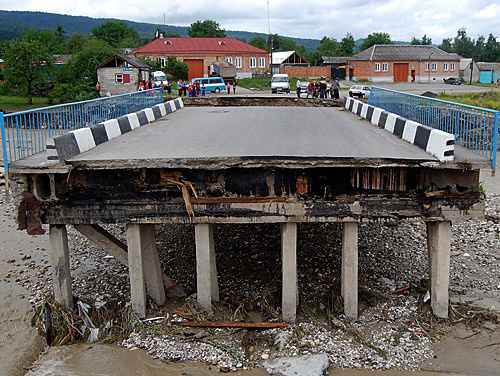 По предварительным оценкам повреждено свыше 35 км автодорог, 24 автомобильных и пешеходных моста, более 18 км берегоукрепительных сооружений, затоплено около 2000 га сельхозугодий.