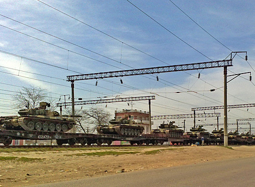 Председатель молодежного парламента Дагестана Тимур Гусаев разместил в своем "Живом Журнале" видеоролик, на котором виден железнодорожный эшелон с грузовыми автомобилями и военной техникой. По словам блогера, эти кадры были сняты им 30 сентября по дороге из Махачкалы в Кизляр.