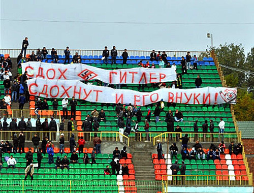 Напомним, 3 октября во время матча "Анжи" - "Спартак" в Махачкале несколько болельщиков "Анжи" попытались развернуть баннер со словами: "Сдох Гитлер. Сдохнут его внуки". Затем произошла драка фанатов "Спартака" с сотрудниками милиции, после матча хулиганы забросали автобус со спартаковскими игроками камнями, а позже автобус с болельщиками московской команды был обстрелян неизвестными. В результате инцидента Российский футбольный союз принял решение оштрафовать футбольный клуб "Анжи" на 1 миллион 60 тысяч рублей.