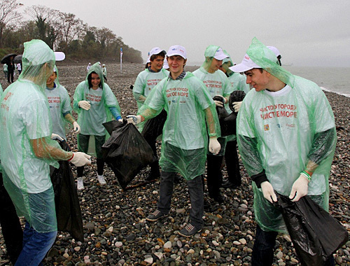 30 октября сочинские студенты и волонтёры "Сочи 2014" убирали от мусора пляж в Имеретинской низменности - там, где развернулось олимпийское строительство.