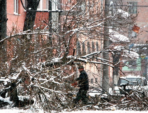 Как сообщал "Кавказский узел", в результате обильного снегопада, начавшегося утром 12 апреля и продолжавшегося на протяжении всего дня 13 апреля, участились обрывы электропроводов и воздушных линий связи как из-за налипания мокрого снега, так и в результате падения крупных ветвей деревьев. По информации пресс-службы мэрии Владикавказа, налипание мокрого снега на проводах привело к обрывам более 100 линий электропередачи, к полудню оставив без света около 1500 жителей поселка Южный, Попова хутора и части района Планы. К вечеру среды без электроэнергии в столице региона оставались более 500 человек.