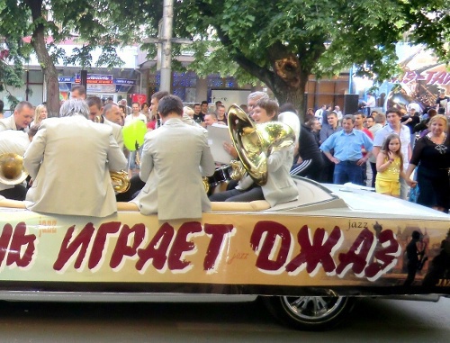 из Южно-Африканской Республики Мозеса Си, а в краснодарской филармонии выступили артисты эстрадно-симфонического оркестра и лучшие джазовые коллективы Кубани. Небольшой оркестр, катающийся в открытом лимузине по главной улице города, играл известные джазовые композиции для прохожих.