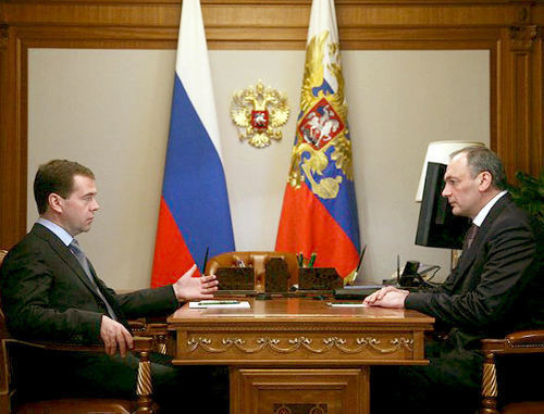 Президент России Дмитрий Медведев встретился с главой Дагестана Магомедсаламом Магомедовым 19 августа в Сочи в своей резиденции «Бочаров ручей».