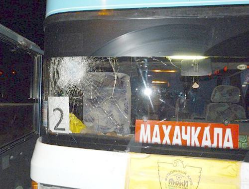 "В воскресенье, примерно в 19.30 на федеральной автомагистрали "Кавказ", на территории Гамурзиевского муниципального округа г. Назрани группа неустановленных лиц в количестве до 30 человек, забросав камнями, остановили следовавшую из Нальчика в Махачкалу колонну из пяти автобусов и нескольких легковых автомобилей, в которых находились игроки и болельщики махачкалинского футбольного клуба "Анжи", - говорится в сообщении пресс-службы МВД Ингушетии.
