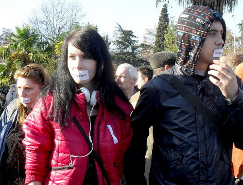 В акции в Сочи, начавшейся в 14:00, приняли участие около 300 человек - представители оппозиционных партий, члены общественных организаций, правозащитники, активисты, простые горожане.