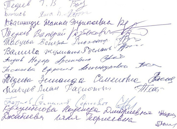 Сегодня, 28 января 2012 года, мы собрались в Цхинвале, чтобы обратиться к Вам, гаранту Конституции РФ. Сотрудниками Следственного управления ФСБ РФ 25 января главный тренер сборной России по вольной борьбе Дзамболат Тедеев был привезен в Лефортово, где в качестве свидетеля по уголовному делу о попытке насильственной смены власти в ноябре 2011 года, возбужденному прокуратурой Южной Осетии, его допрашивали 5 часов подряд. Кроме того, в ходе обыска в квартире Тедеева у него, гражданина России, без предъявления обвинения изъяли заграничный паспорт.