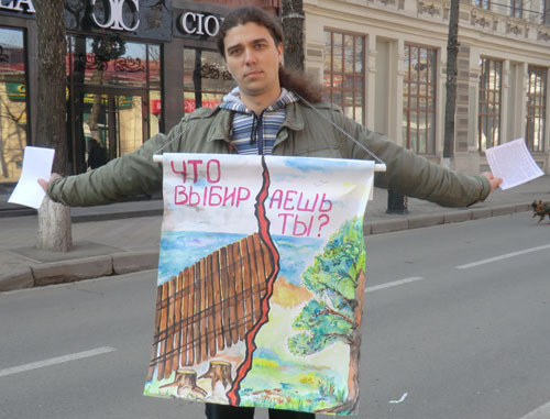 "Акция в Краснодаре прошла на удивление спокойно, – говорит координатор "Эковахты" Андрей Рудомаха. – С 15.00 до 16.30 по всему городу проводились 12 пикетов. Были задействованы около 30 человек: в районе каждого одиночного пикета всегда находились по одному-два сопровождающих, которые снимали фото и видео, а также были готовы помочь пикетирующему в случае каких-то инцидентов. Но никто задержан не был".
