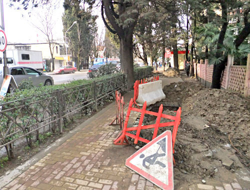 Заместитель директора филиала ОАО "Кубаньэнерго" Суслан Кихиев пояснил корреспонденту "Кавказского узла", что порыв произошел по вине строителей дороги-дублера. Бригады энергетиков, по его словам, в течение дня искали прорывы и устраняли их на улице Чайковско