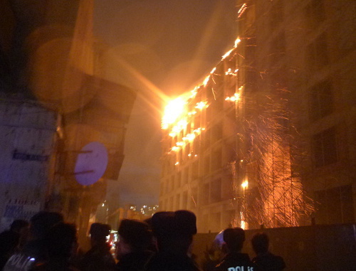 Сильный пожар возник в результате взрыва, произошедшего в строящемся высотном здании в центре Баку. Огнем охвачено четыре этажа.