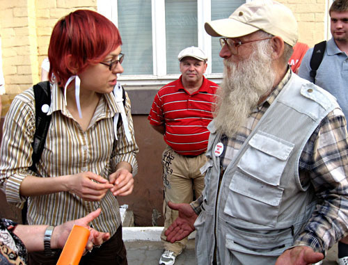 Полиция оцепила сквер имени Кирова и не пускала костюмированных артистов. Астрахань, 21 апреля 2012 г. Фото Вячеслава Ященко для "Кавказского узла"