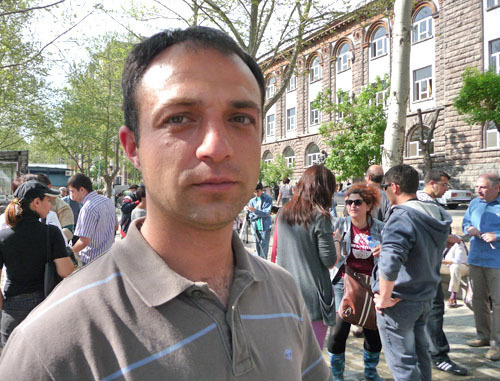 Активисты также сообщили подробности задержания 29 апреля. Так, Геворг Сафарян рассказал корреспонденту "Кавказского узла", что в тот день представители органов власти окружили защитников парка и насильно убрали установленную палатку, "в результате чего некоторые находящиеся в этой толкотне активисты получили телесные повреждения".