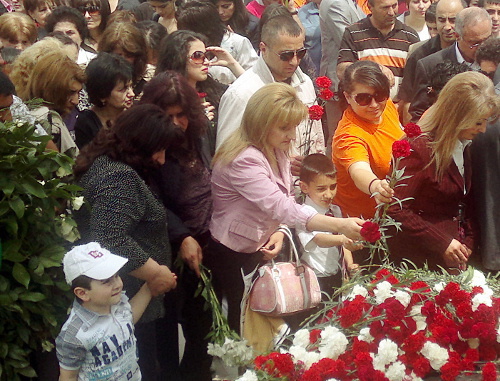 В церемонии возложении цветов приняли участие Католикос Всех Армян Гарегин II, делегация из Армении во главе с главой республики Сержом Саркисяном, руководство Нагорного Карабаха, иностранные гости и армяне из диаспоры.