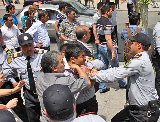 В столице Азербайджана полиция пресекла акцию протеста "Гражданского движения за демократию "Общественная палата" (ГДДОП) с требованием обеспечения свободы собраний, которая проводилась в связи с отказом Бакинской мэрии согласовать шествие-митинг движения 13 мая.