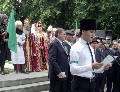 В результате Кавказской войны под угрозу было поставлено физическое и духовное существование адыгского народа, заявил, открывая митинг у памятник "Древо жизни", на который собрались не менее трех тысяч человек, министр культуры Кабардино-Балкарии Руслан Фиров. "Современная ситуация требует от нас знания и уважения всех народов, населяющих Россию. Общее осуждение мрачных страниц прошлого способствует укреплению федерализма и взаимопониманию народов", - сказал Руслан Фиров.
