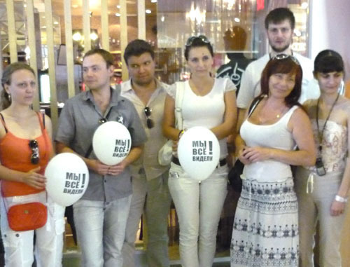 В Ростове-на-Дону десять представителей оппозиции провели флешмоб в поддержку "Марша миллионов" против нового закона "О митингах". С белыми ленточками и шарами с надписью "Мы все видели!" они прошли по торговому центру "Горизонт".
