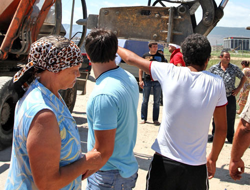 По их данным, 26 июля строители с помощью бульдозера снесли два забора, расположенных на территории домовладений. После того, как был снесен второй забор, местные жители окружили бульдозер, не дав продолжить работы по сносу.