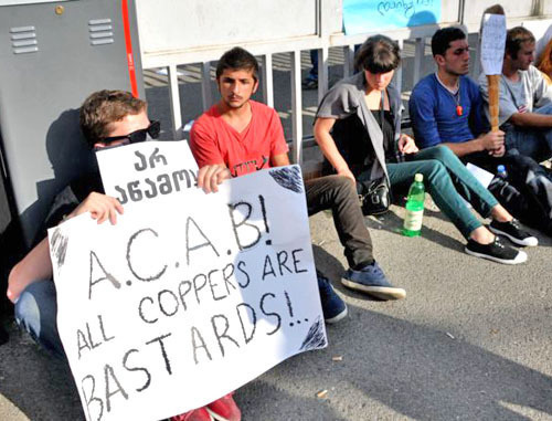Между тем в Тбилиси возобновились акции против насилия в тюрьмах. Сегодня к акции у здания министерства обороны присоединились студенты и педагоги Театрального университета.