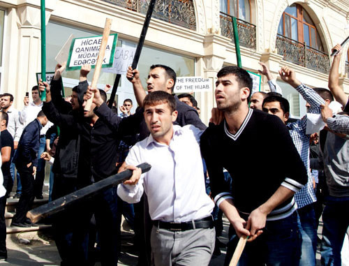 Напомним, в ноябре 2010 года Министерство образования Азербайджана запретило посещение школ ученицами в хиджабе, так как мусульманский платок не часть школьной формы. Верующие заявили, что это нарушение прав человека, они провели ряд акций против этого запрета. Самой массовой из них была акция протеста 6 мая 2011 года также разогнанная полицией.