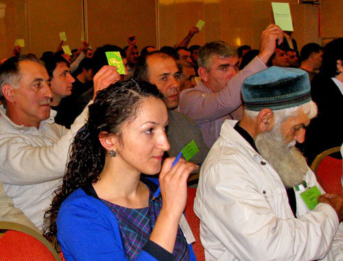 Как сообщал "Кавказский узел", Внеочередной съезд народов Дагестана проходил в Москве 26 октября в гостинице "Космос". Всего в зале гостиницы собралось около 300 человек. По словам организаторов, более 200 из них – делегаты, избранные от различных территорий республики и общественных организаций. На форум прибыли также представители дагестанских диаспор в других городах России, около 40 московских дагестанцев и большое количество журналистов.