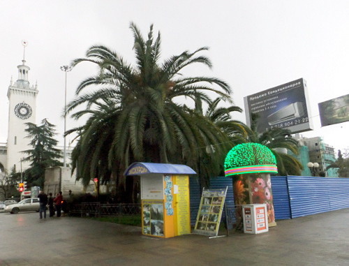 В районе железнодорожного вокзала Сочи строители огородили забором пальмовую аллею в парковой зоне, жители города опасаются незаконной вырубки зеленых насаждений.