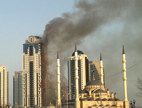 В Грозном сотрудники МЧС заявили об отсутствии спецтехники для тушения пожара в высотном комплексе