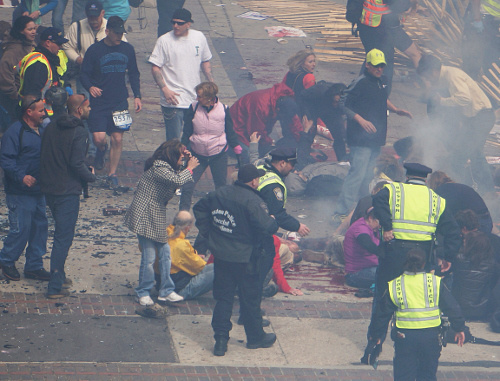 15 апреля на финише марафона в американском городе Бостон произошел двойной взрыв, жертвами которого стали три человека, порядка 180 человек получили ранения. Полицейские заявили, что в организации теракта подозреваются братья, 26-летний Тамерлан и 19-летний Джохар Царнаевы, выходцы из Чечни. Тамерлан Царнаев был убит 19 апреля в ходе спецоперации, 20 апреля в пригороде Бостона был задержан и Джохар Царнаев, он был госпитализирован в критическом состоянии с ранениями шеи и ноги.