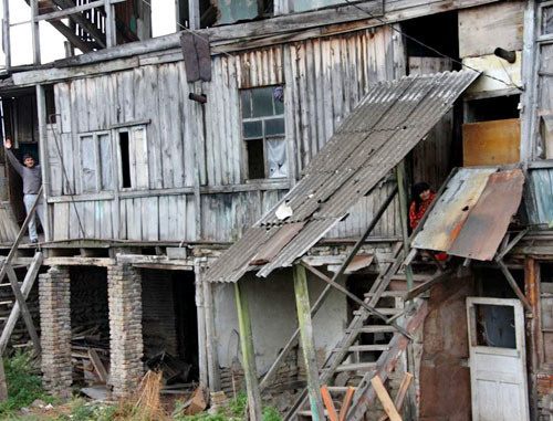 "Здание заготзерна - административное и непригодно для проживания в нем людей. Но мы были вынуждены заселить туда 16 семей беженцев из Кахетинского района Грузии, которые бежали оттуда во время военной агрессии в августе 2008 года", - сказал Ушаков.