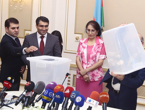 Сегодня в ЦИК Азербайджана состоялась жеребьевка выступлений кандидатов в президенты. Для предвыборной агитации на бесплатной основе Компания общественного телерадиовещания (КОТРВ) предоставит шесть часов в неделю, по три часа на общественном телевидении и радио, сообщил глава ЦИК Мазахир Панахов.