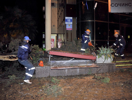 В Сочи, который пострадал в результате ураганного ветра, идут восстановительные работы. Возобновлена подача электроэнергии, рабочие расчищают город от упавших деревьев. Жертв и пострадавших удалось избежать. Местные жители, комментируя последние природные катаклизмы в городе, говорят о незнании того, как себя вести при чрезвычайной ситуации. В отделе ГО и ЧС администрации Сочи заявляют, что большинство убежищ в городе распроданы или находятся в аварийном состоянии.