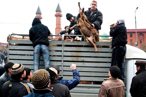 В этом году по решению мэрии и Духовного управления мусульман Дагестана заклание жертвенных животных, которое обычно происходило в центре Махачкалы у Джума-мечети на улице Ирчи Казака, перенесено в специально отведенное место на северной окраине города у торгового центра "Киргу".