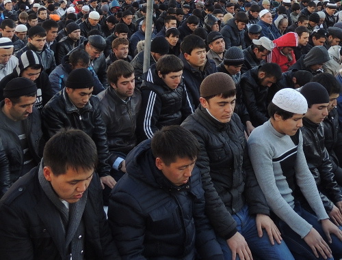 В целом праздничная молитва прошла без инцидентов, мусульмане вели себя организованно и аккуратно, сообщил прихожанин.