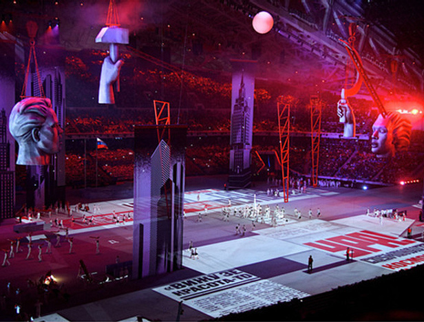 Михаил живет в Сочи, работает в транспортной дирекции Олимпиады: "Когда я устраивался на работу, думал нас пригласят смотреть церемонию открытия. Но нет. Коллеги были на репетиции, и рассказали, что покажут. Но все равно интересно смотреть. Жаль попал на территорию через 2 часа после начала из-за толп. Потом скачаю, целиком посмотрю".