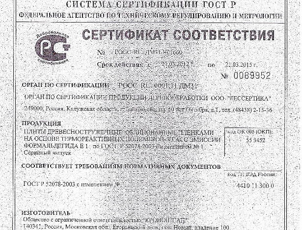 Он передал корреспонденту «Кавказского узла» копию сертификата, а также протоколов лабораторных исследований. В экспертном заключении говорится, что плита древесно-стружечная, облицованная пленками на основе термореактивных полимеров, удовлетворяет «Единым санитарно-эпидемиологическим и гигиеническим требованиям к товарам, подлежащим санитарно-эпидемиологическому надзору в соответствии с обозначенной областью применения. Плиты могут быть использованы в строительстве зданий промышленного и гражданского назначения, в том числе в жилых, детских и лечебно-профилактических учреждениях. Документ подписан экспертом Макарук М.И., заведующим токсикологической лабораторией, кандидатом биологических наук.