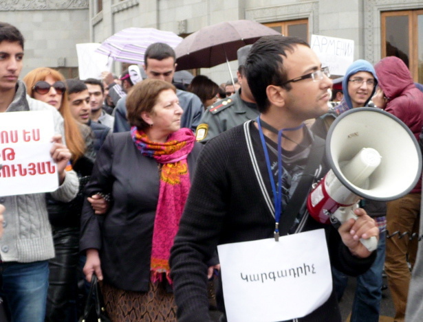 "Марш миллиона масок" прошел в Ереване 5 ноября 2013 года. После того, как протестующие вступили в противостояние с полицией, были задержаны организатор акции Шант Арутюнян и еще 19 участников, 14 из них затем было предъявлено обвинение. Все задержанные обвинялись в оказании сопротивления представителям власти с применением насилия. 31 марта стало известно, что участникам акции "Марш миллиона масок", в том числе Тиграну Петросяну, изменено обвинение с оказания сопротивления представителям власти на хулиганство.