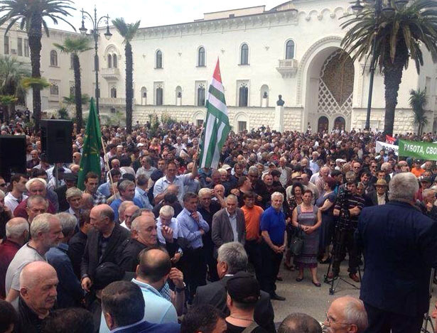 Сторонники президента Александра Анкваба собираются на митинг в Сухуме